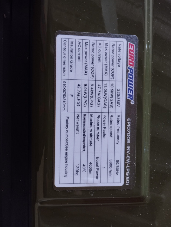 - مدل: EP10700S-INV-EW-LPG