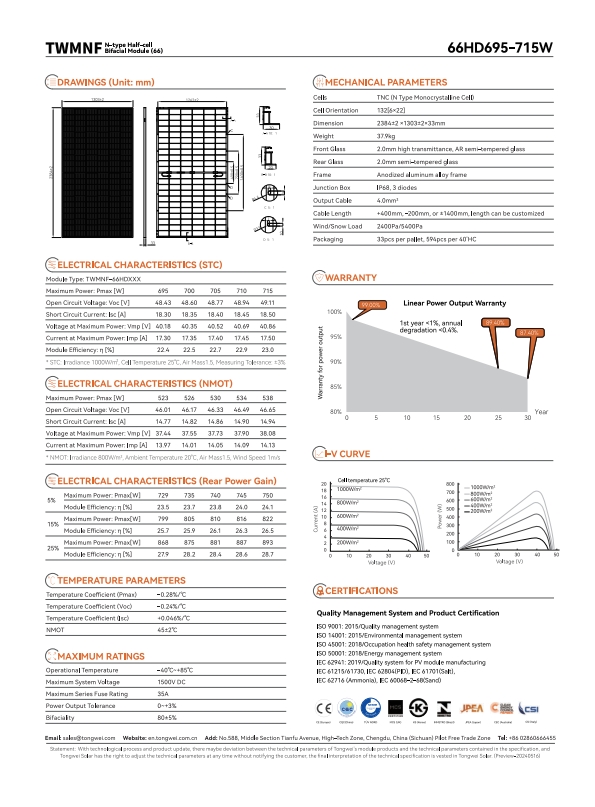 | ویژگی | TW Solar 715W | Trina 720W | JA Solar 715W |