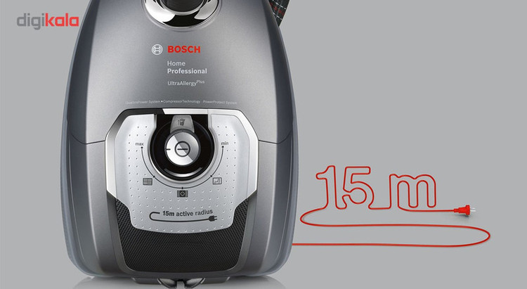 ویژگی برجسته دیگری که در این جارو برقی بوش استفاده شده است، تکنولوژی کمپرسور است. با استفاده از این تکنولوژی نوآورانه، این جاروبرقی با توان موتور 1800 وات قادر به ایجاد مکشی قدرتمند و ارائه عملکردی بینظیر است. با استفاده از تکنولوژی کمپرسور، شما میتوانید تنها با یک بار کشیدن جارو برقی، تمامی ذرات و حتی موها را از روی انواع سطوح مثل فروش و موکت بردارید. این ویژگی منحصربهفرد باعث صرفهجویی در زمان و انرژی شما خواهد شد.